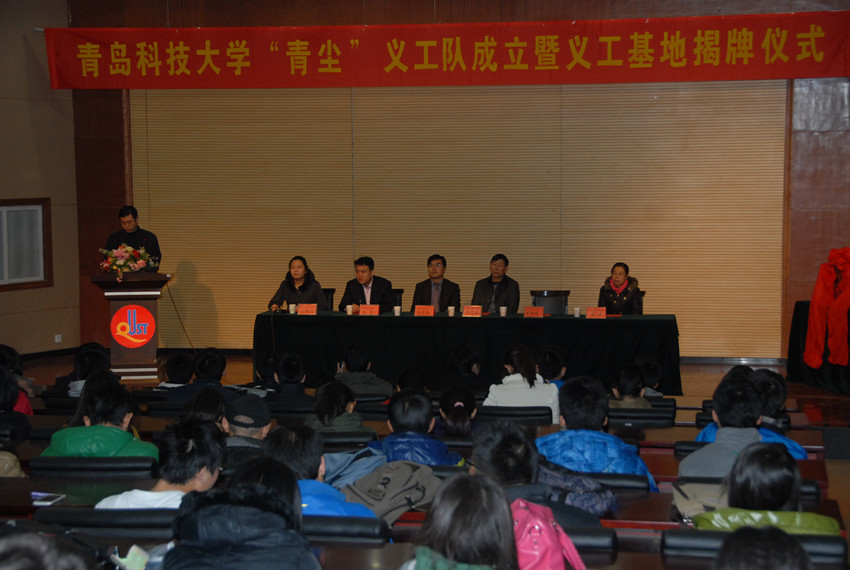 12月19日,免费性爱片 “青尘”义工队成立暨义工基地揭牌仪式在崂山校区第一报告厅举行。