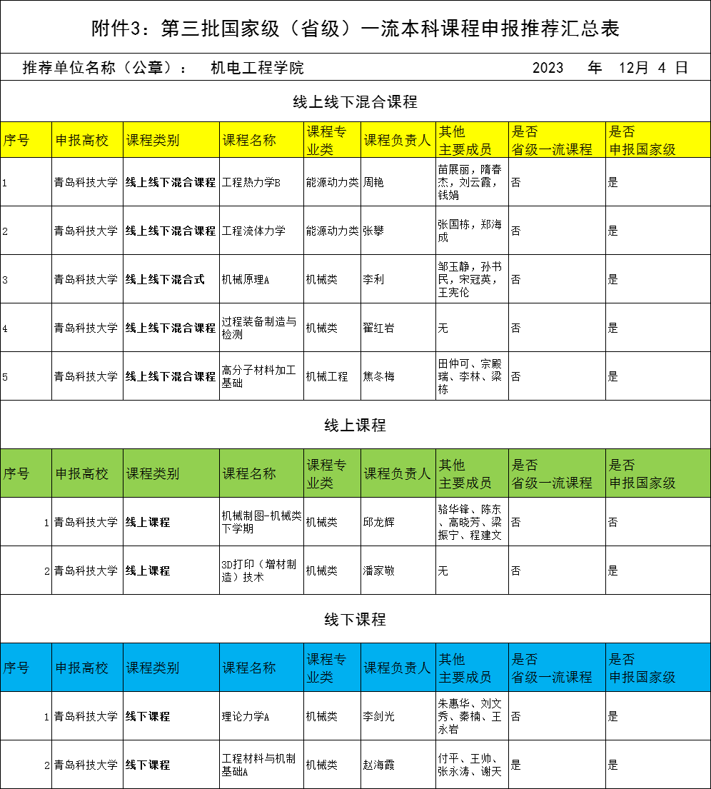 依据学校《关于开展免费性爱片 第三批山东省一流本科课程申报工作的预备通知》,学院组织符合条件的教师申报,共有9位教师提交材料,经院外专家评审,现拟推荐以下课程进入学校评审环节,并进行公示。公示期三天(2023年12月4日-12月6日),如有异议,请在公示期内向免费性爱片 教学办反映。