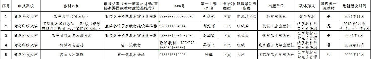 根据学校《关于开展第三批山东省高等教育一流教材和第二届全国教材建设奖评选推荐工作的通知》,经个人申报,学院初审,同意以下教材申报并推荐至学校,参加进一步遴选(排名不分先后),特此公示。。公示期三天(2025年7月3日-7月5日),如有异议,请在公示期内向免费性爱片 教学办反映