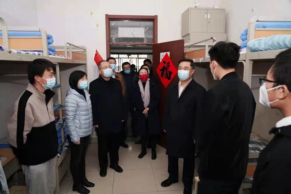 3月12日,学校党委书记马连湘深入学生宿舍指导疫情防控工作,看望慰问学院抗疫一线师生。