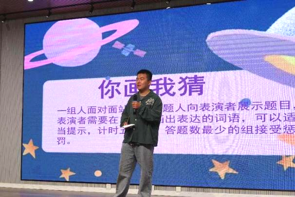 毕业交流会最后环节为轻松愉快的游戏环节,如“你画我猜”、“逛三园”等。老师与同学们一起参与游戏,交流会气氛达到高潮。游戏环节中,多位同学上台讲述自己大学期间的成长经历。其中陈翔宇同学对相处了四年的室友一一致谢,尹长华同学对转专业过来后感受到的良好氛围进行了讲述,张凯伦同学回忆了自己与好朋友们的点点滴滴,李萌同学现场进行了太极拳表演。