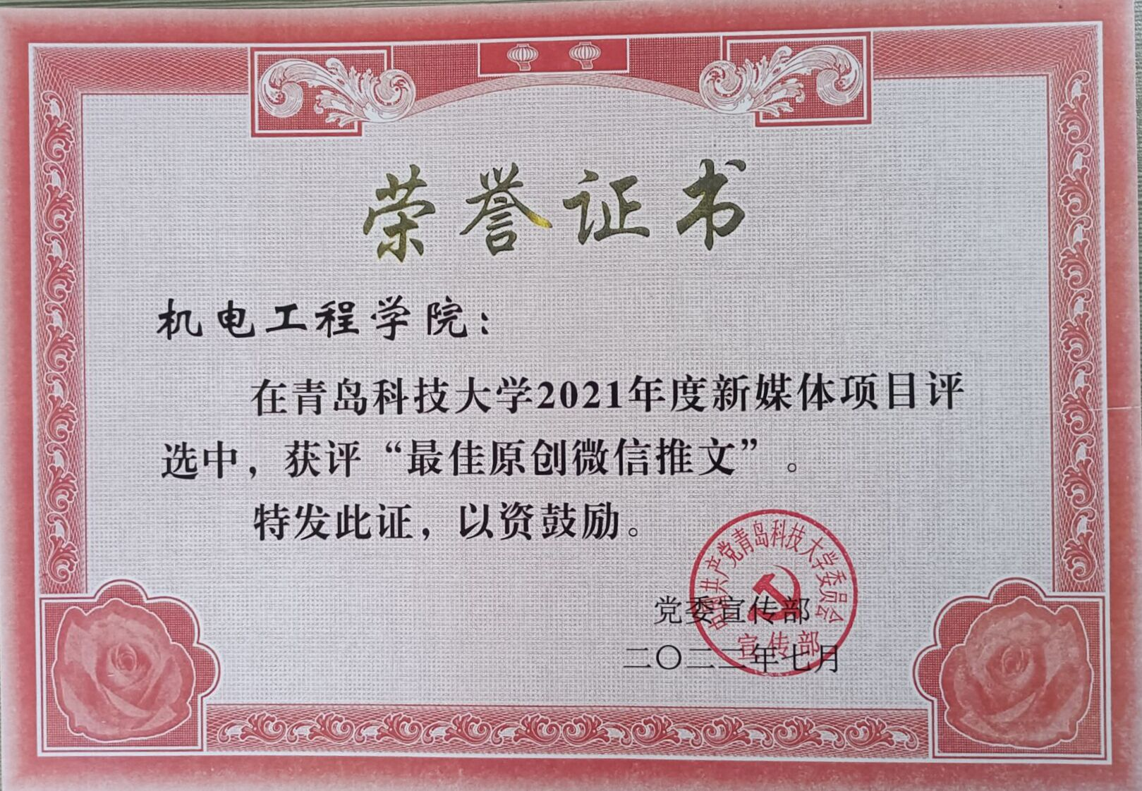 ”荣获2021年度最具影响力微信公众平台,新媒体项目评选中获评“最具影响力短视频”、“最佳原创微信推文”和“最受欢迎微信公众号”,于超获2021年度新闻宣传先进个人。
