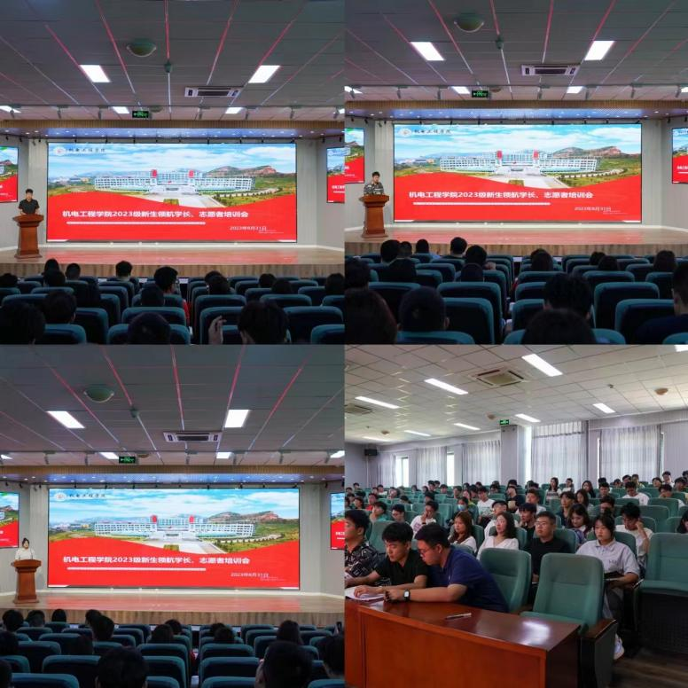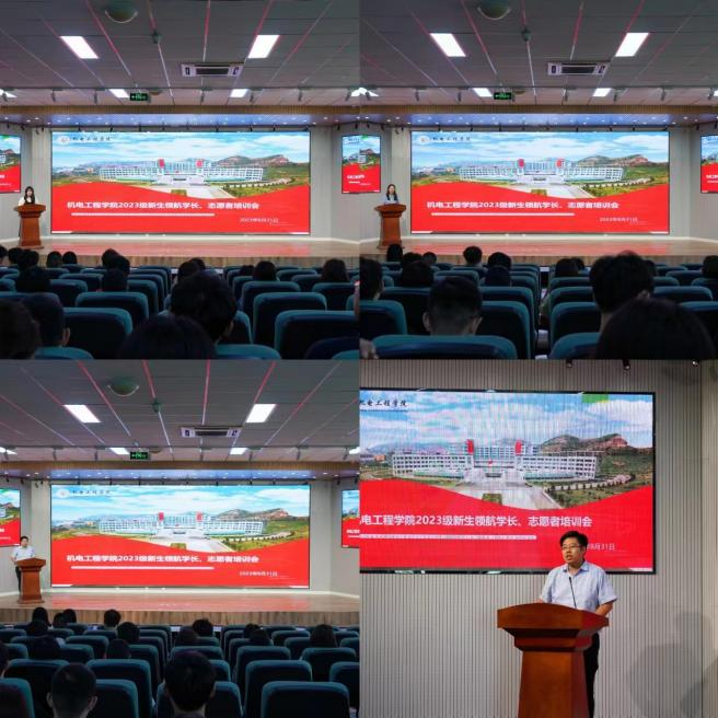 于8月31日13:00在机电楼530报告厅举行2023级新生领航、志愿者培训会。学生会指导老师于超、2022级辅导员穆青青老师、2023级新生辅导员崔瑛老师、50名领航学长以及150名迎新志愿者共同参会。
