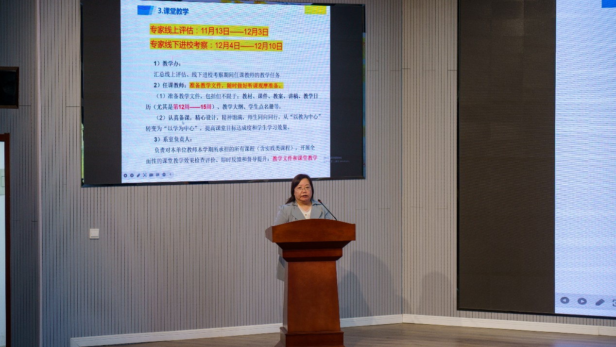 学院副院长李剑光首先回顾了学院教育教学发展的现状和面临的挑战,对学院上一阶段的教学工作给予充分肯定,并对后续教学安排工作提出具体要求。一是提高教师队伍能力,推进教学改革,提升教育教学能力;二是加强人才培养方案的制定,明晰人才培养要求,增强专业吸引力;三是提高教育教学评估水平,教学安排是教学工作的重中之重,要确保教学方法的有效性和灵活性、教学目标的明确性和可行性。