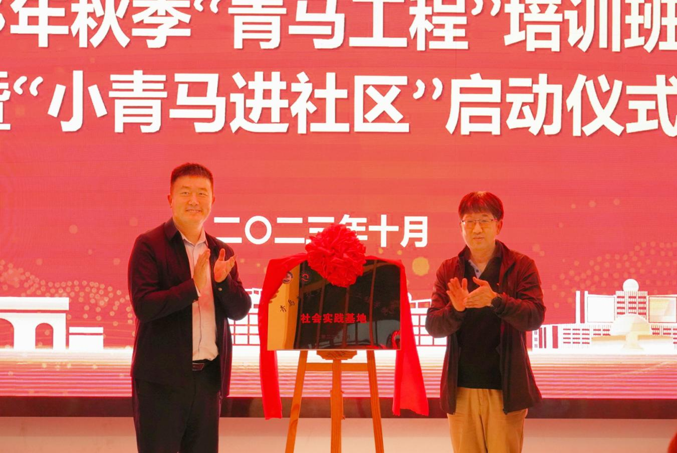 在仪式上,陈兵与九水街道社会事务办负责人陈鹏共同为社会实践基地揭牌,为青年学生成长成才提供机遇、搭建平台。