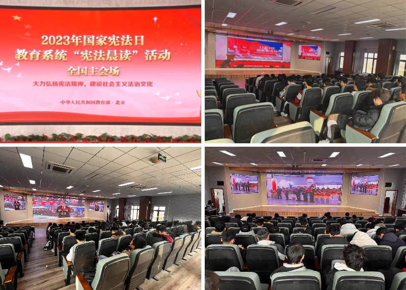 组织学生在学院楼530会议室集中观看国家宪法日教育系统“宪法晨读”直播,通过跟随教育部政策法规司领导的领读,高声朗诵宪法部分条款,丰富学生学习宪法形式,提高学生学习宪法的积极性和主动性。