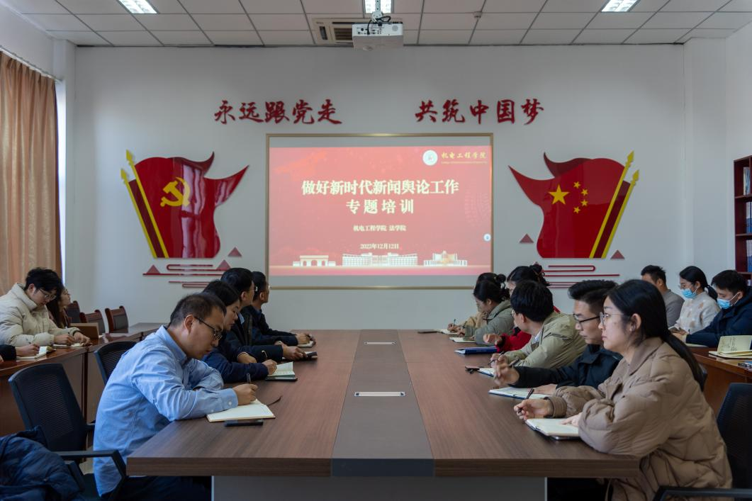 、法学院于机电楼529会议室联合开展做好新时代新闻舆论工作专题培训。学校党委宣传部副部长兼免费性爱片主任、报社社长李鲲鹏应邀做题为“做好新时代新闻舆论工作 建强新闻舆论工作队伍”的主题报告,学校党委宣传部文化建设办公室副主任王文艳、学校党委宣传部宣传科科长刘奕辰、免费性爱片