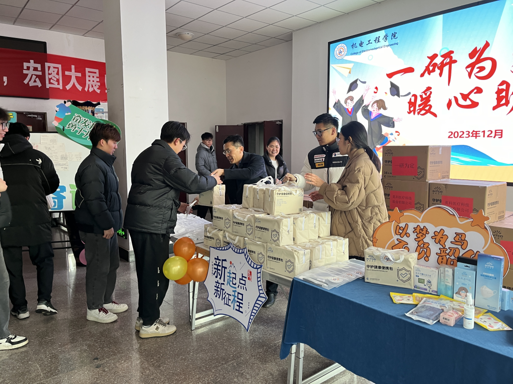 举办“一‘研’为定,暖心护航”考研温暖助力活动,学院领导、教师和学生代表慰问考研学子并送上礼包祝福,为大家加油鼓劲。