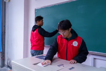 青年志愿者两人一组,协同作战、相互监督,在崂山校区明德楼三层四层开展三尺讲台志愿服务。志愿者手拿劳动工具,认真清扫讲台卫生,不畏脏累,尽职尽责,将讲台变得干净整洁,青年志愿者用实际行动践行雷锋精神,增强爱校荣校的主人翁意识,表达对于三尺讲台的敬畏和对于老师辛勤付出的尊重。