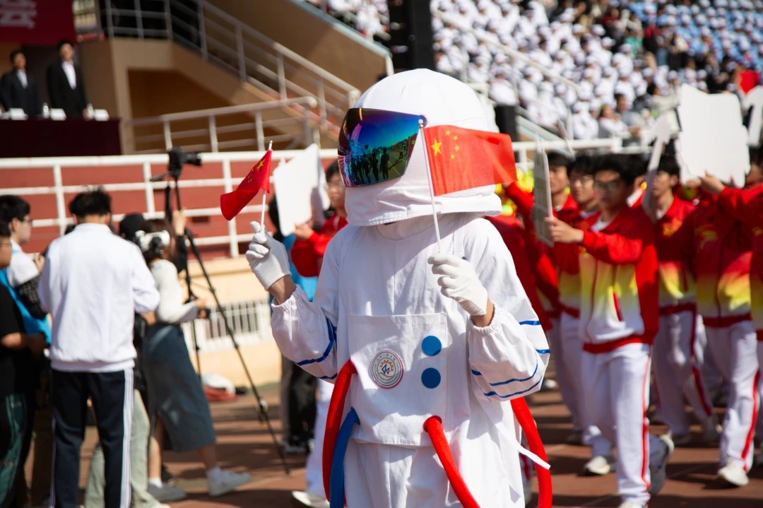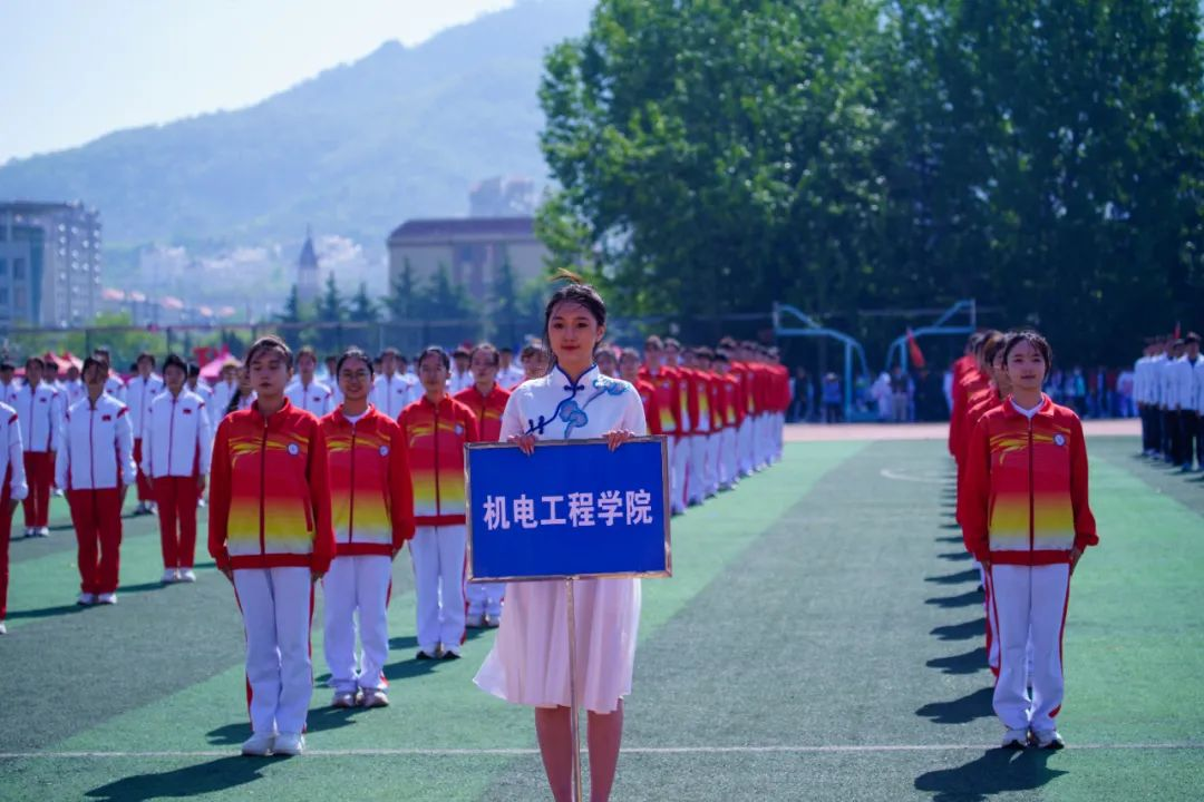 在激昂的乐曲声中,由36名机电学子组成的彩旗队手举鲜艳的红旗,踏着统一的步伐,坚定地向前迈去。他们面带微笑,洋溢着青春的活力和热情,是校园里最美丽的风景线。