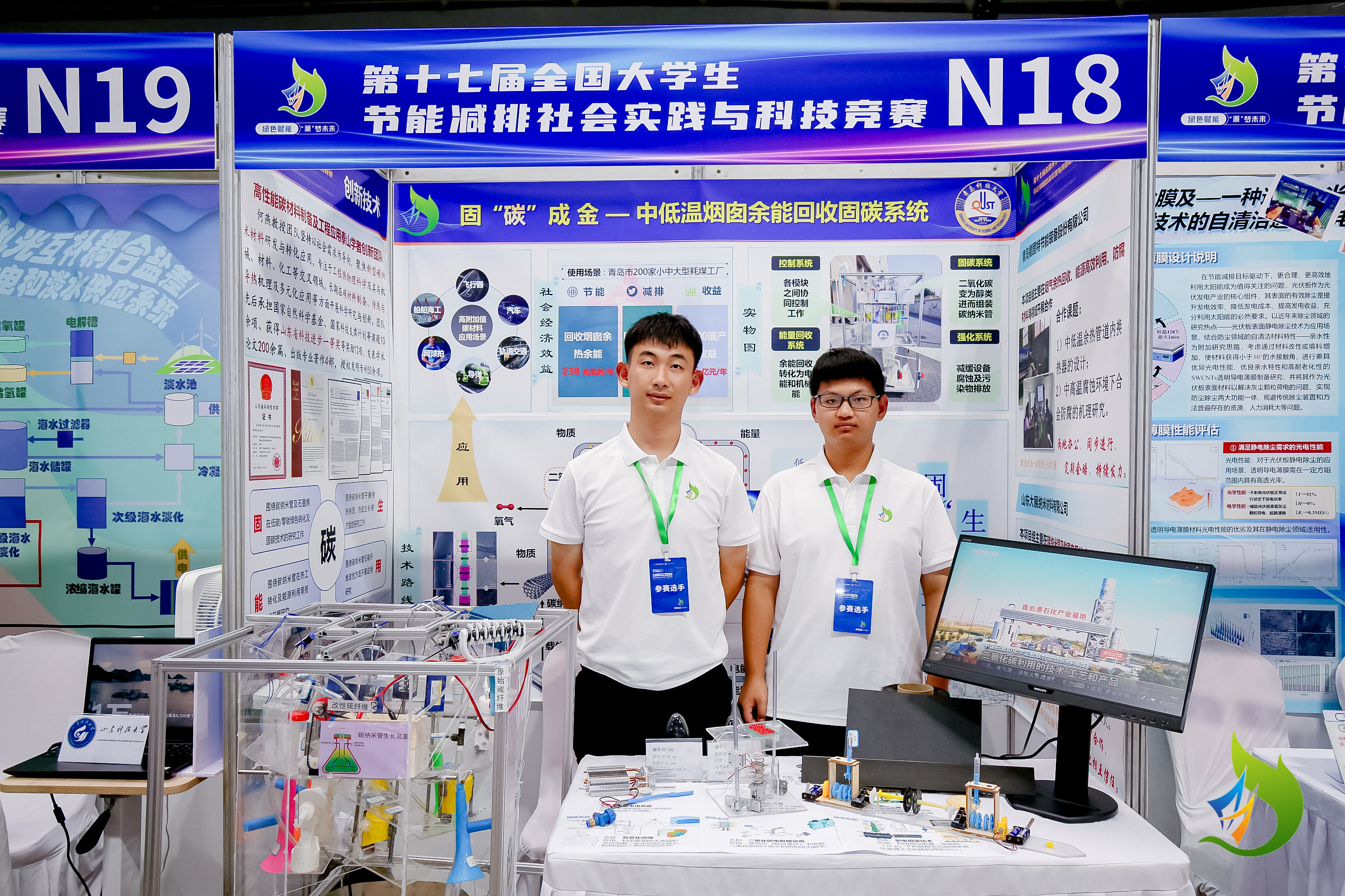 白文娟老师指导的项目《固“碳”成金——中低温烟囱余能回收固碳系统》荣获全国一等奖,本项目通过能量转化及组合实现烟囱内低品质余能利用,将“气态碳”变为“固态碳”变废为宝,以热电效应、电磁感应效应、压电效应和空气动力学原理,实现温差能、流化能、压力能和动能的全方位能量同步回收及利用,收集的能量进行固“碳”成金,不仅能源回收率高,而且耐腐蚀且节能环保。
