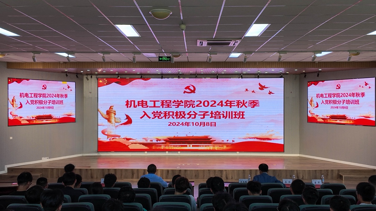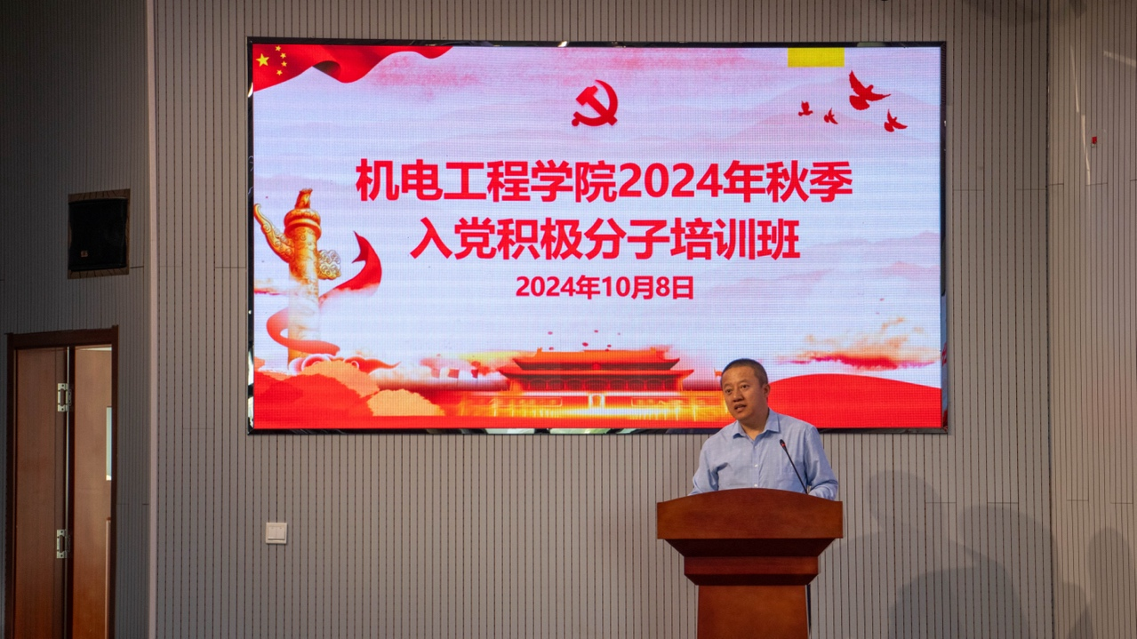 在机电楼530会议室举办2024年秋季入党积极分子培训班。学院党委书记任允晓、党委副书记兼副院长杨小明、团委书记兼学工办主任逄柏鹏、学工办辅导员及127名入党积极分子参加培训。