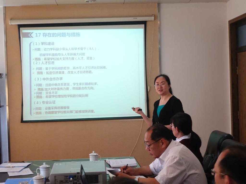会上,何燕结合学校110项重点工作和学院47项重点工作,围绕学院组织机构调整、学科整合、材料成型及控制工程中韩合作办学评估等十项重点工作进行了汇报,重点介绍了学院本科教学、专业建设、师资队伍、青年教师培养、实习实训、研究生培养、专业认证等方面取得的成绩,以及在建设发展过程中遇到的困难。与会领导并就各自分管工作进行了汇报和交流。