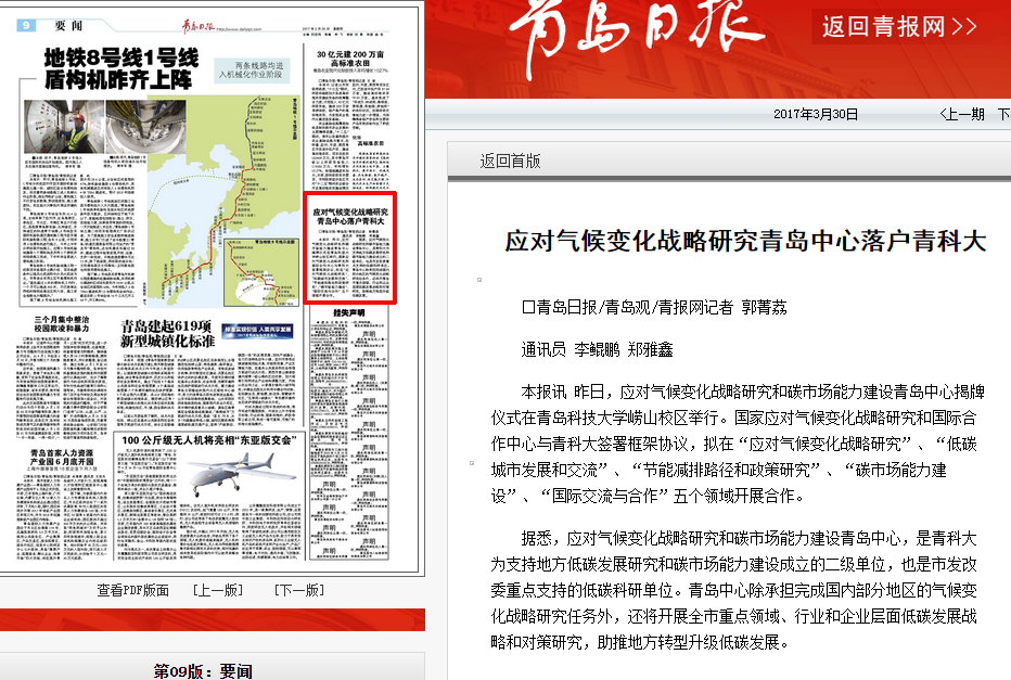 【青岛日报】应对气候变化战略研究青岛中心落户青科大