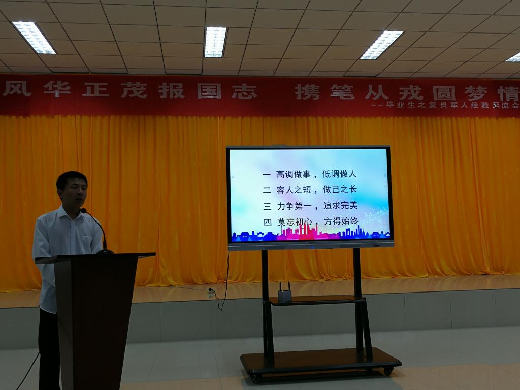 工业设计123班学生)《给怀揣军旅梦想学弟们的一封信》为抓手,以毕业生优秀复员军人代表经验交流为着力点,在学院积极开展大学生应征入伍工作,旨在培养学生以“科大精神”为引领、践行“橡胶品格”,勇做新时代的弄潮儿。