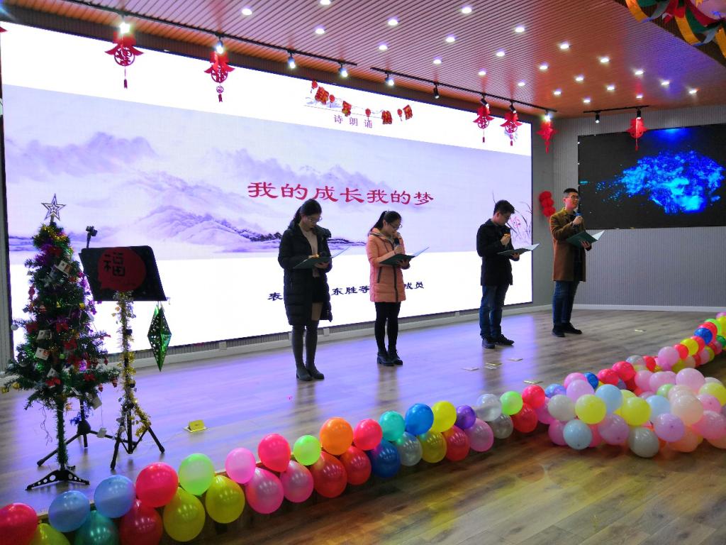 晚会以青春回忆为主旋律,表演者们为在场观众们献上了一场视觉与听觉的饕餮盛宴。整场汇演由舞蹈、小品、诗朗诵、歌曲等13个节目组成,在表演过程中穿插了趣味十足的游戏环节。游戏互动环节拉近了同学们之间的距离,充分调动了现场的气氛,现场笑声不断。元旦晚会在老师们活力迸发的舞蹈《海草》中拉开序幕。诗朗诵《改革开放四十周年》、《我的成长我的梦》带着我们重温祖国改革开放40年艰辛历程,领会改革开放精神,激励着我们要做一名新时代研究生,为党和国家贡献自己的力量。小品《面试》展现了一个诙谐幽默的面试场景,欢声笑料不断。孙书记与付老师对唱的《天籁传奇》引起阵阵掌声,点燃了现场气氛。歌曲《今天是你的生日,妈妈》表达了在外求学游子对母亲的深切思念和祝福。《带你去旅行》、《Take me to your heart》、《如果没有你》、《双子》等歌曲余音袅袅、声动梁尘,展现了我院研究生的风采。杯子舞《Cups》和吉他弹唱《姑娘》惊艳了众人。多种多样的节目形式,精彩纷呈的演绎赢得了观众的阵阵掌声和欢呼声,让现场观众们沉浸在这节日欢庆的氛围里。
