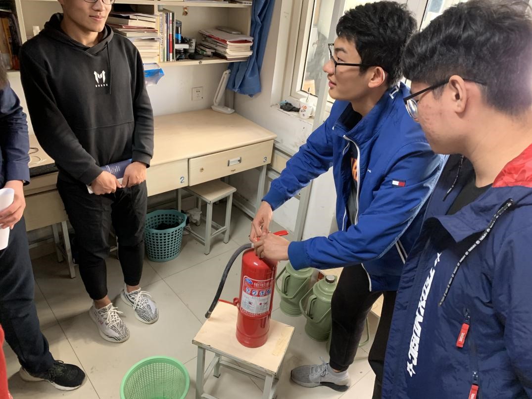 活动中,各位党员同志向宿舍楼下过往同学发放宣传页,积极宣传即将到来的全国“119消防安全日”。推动在校同学重视消防安全、学习宿舍安全消防常识、普及火灾逃生方法,引导广大同学提高宿舍消防安全意识,提高宿舍防火意识与本领,牢固树立“预防为主、防消结合”的理念。同时,各位党员深入宿舍,向同学们演示、讲解灭火器的正确使用方法和注意事项,防患于未然。