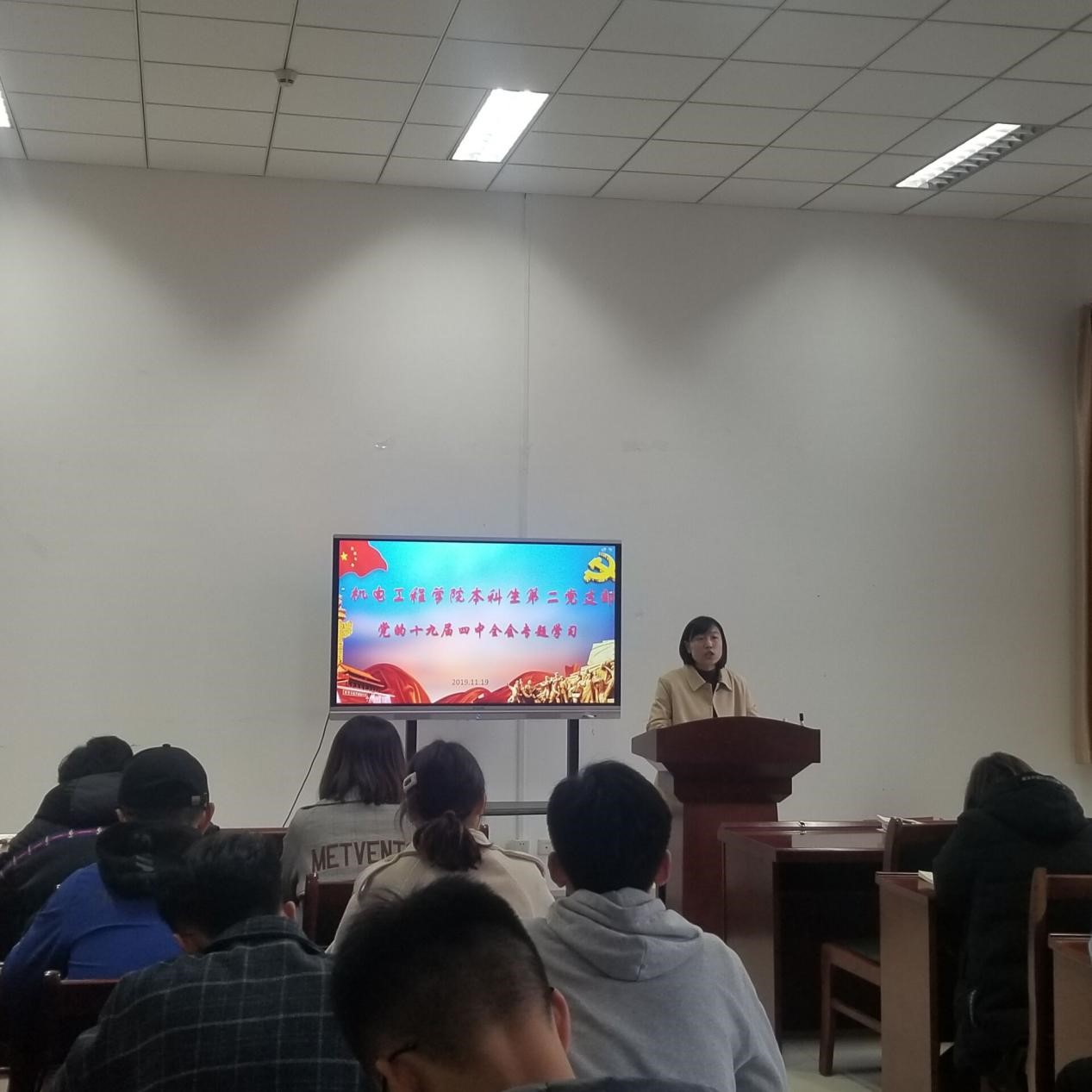本科生第二党支部在机电大楼529召开了党的十九届四中全会专题学习,本次会议重点围绕习近平总书记在党的十九届四中全会上的报告和重要讲话的精神做交流发言,支部书记曲智强主持学习。
