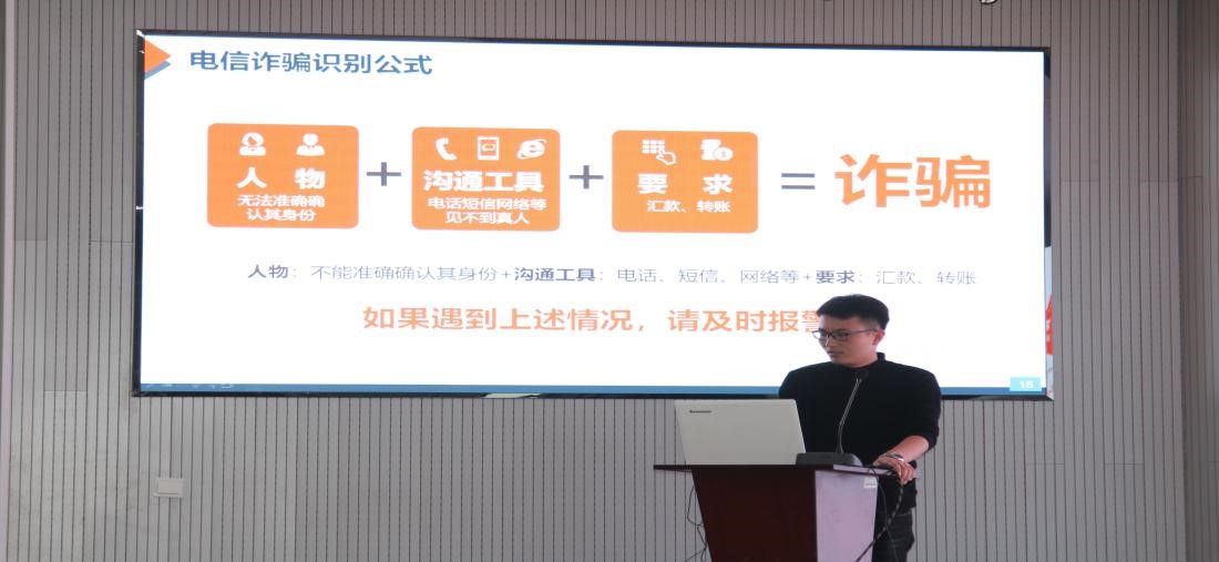 分析了宿舍起火、实验室爆炸、电信诈骗等案件的诱因、犯罪形式和预防措施;安全知识竞答环节,按班级分组,以组为单位,轮组上场进行竞答,最后根据竞答分数评选出前三名,其间同学们积极踊跃,争相回答。此次大会纠正了学生安全误区、使学生充分掌握安全知识,避免意外事故发生。