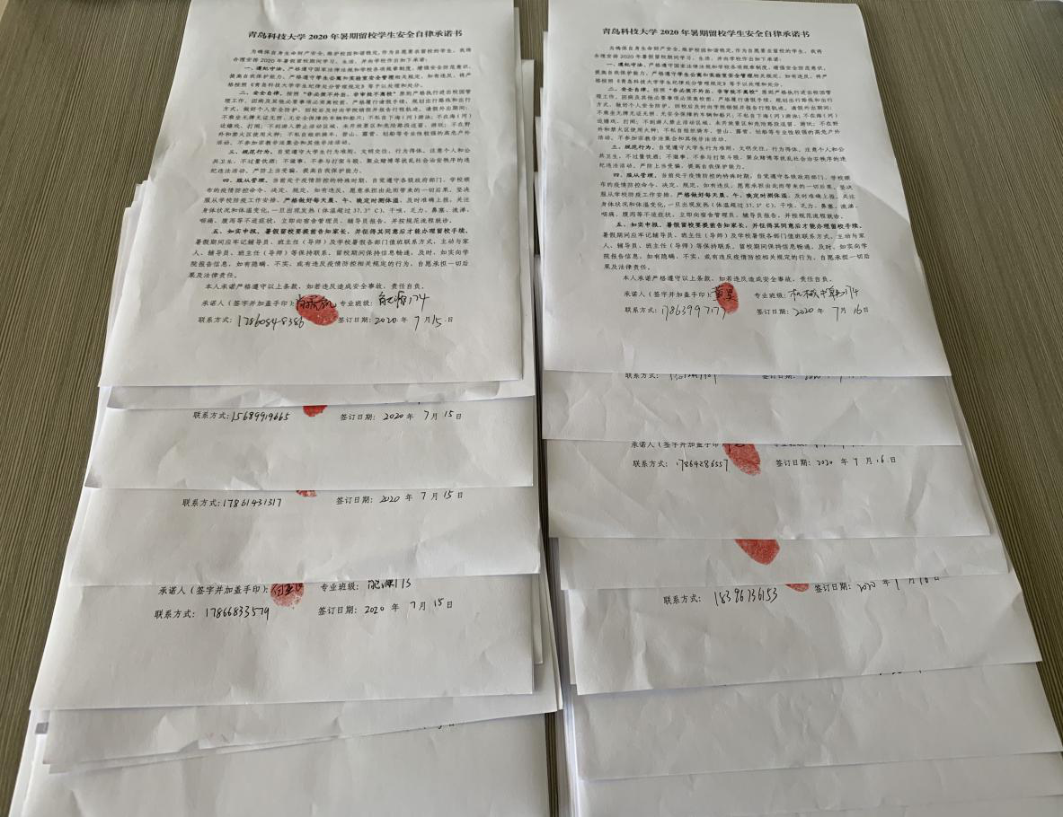 线下,辅导员就暑假留校学生召开会议,强调遵守学校疫情防控管理规定,做好日测体温等常规工作,尤其是做好消防安全等工作,并与留校学生签订《安全自律承诺书》。