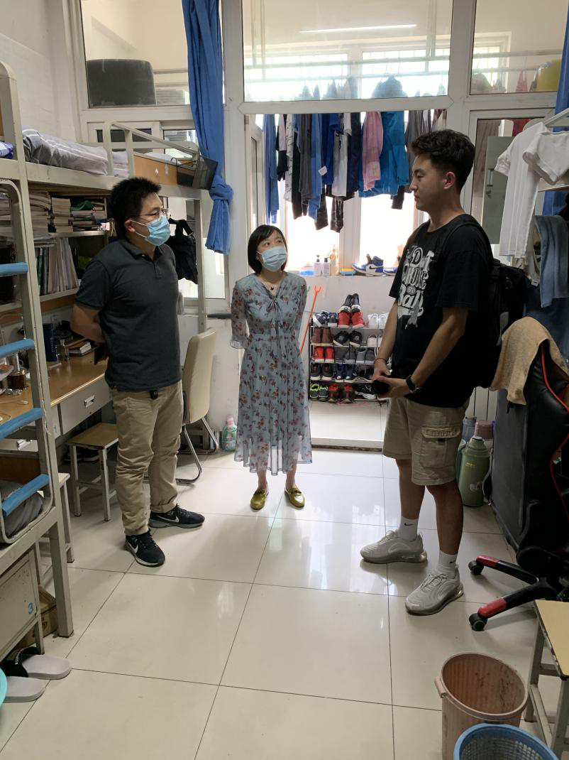9月1日,2017级辅导员走访学生宿舍,查看宿舍卫生,消除宿舍安全隐患,确保疫情防控措施全覆盖、无死角,为学生安全有序学习生活保驾护航。