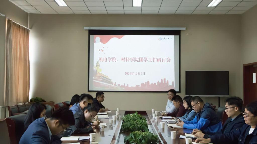 团委书记、学工办主任王作辉对我院学生和专业设置情况、团学队伍及团学工作概况进行简明扼要的介绍。材料学院团委书记、学工办主任逄柏鹏介绍了材料学院在学风建设、考研先进等方面的情况。双方在学生教育管理、创新创业、学风建设、如何加强团学队伍、个人科研能力等方面进行深入交流。