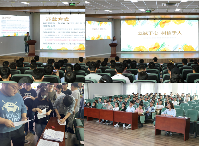 2021届毕业生还款告知书》。毕业生代表祝豪杰表示,将会按期还款,遵规守纪文明离校,树立良好形象,做到饮水思源,感恩离校,珍惜师恩和同窗友谊。