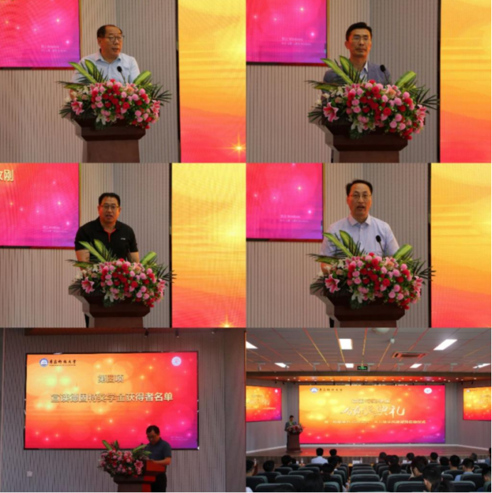 韦殿华代表学校向出席仪式的企业代表表示欢迎,向长期以来鼎力支持学校发展、关心学生成长成才的企业单位致以诚挚感谢,向青岛德固特节能装备股份有限公司的成功上市表示热烈祝贺,向获奖的同学们表示衷心祝贺,并对全体师生分享了三句话:一是非学无以广才,非志无以成学。要把为国为民,探求真理作为自己的求学理想,经得住考验,抓得住机遇,努力成为有志青年;二是吾生也有涯,而知也无涯。要有“知不足”的清醒,还要有“下苦功”的决心,更要有“学到底”的韧力,把学习当做一种政治责任、一种精神追求、一种生活方式,坚持下去不松懈;三是读书切戒在慌忙,涵泳工夫兴味长。以“咬定青山不放松”的毅力,干字当头,真抓实干,埋头苦干,努力做堪当民族复兴大任的时代新人。