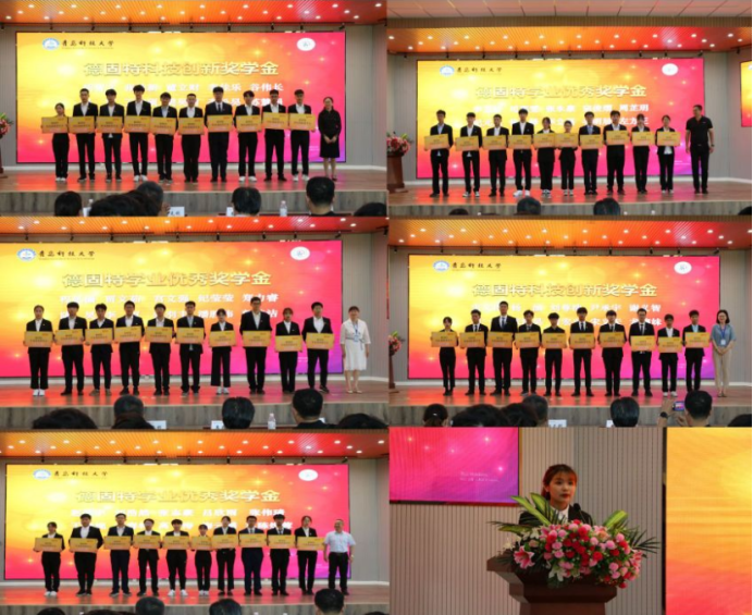 青岛德固特节能装备股份有限公司总经理刘汝刚介绍了公司的发展状况,期待与学院在产学研融合、人才就业等方面深度合作,向德固特奖学金获得者表示祝贺,也期待同学们戒骄戒躁再创佳绩。
