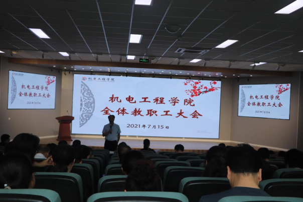 在D3楼530会议室召开全体教职工大会,学院党委书记孙立军,学院院长何燕,学院领导班子及全体教职工参加了会议。会议由院长何燕主持。