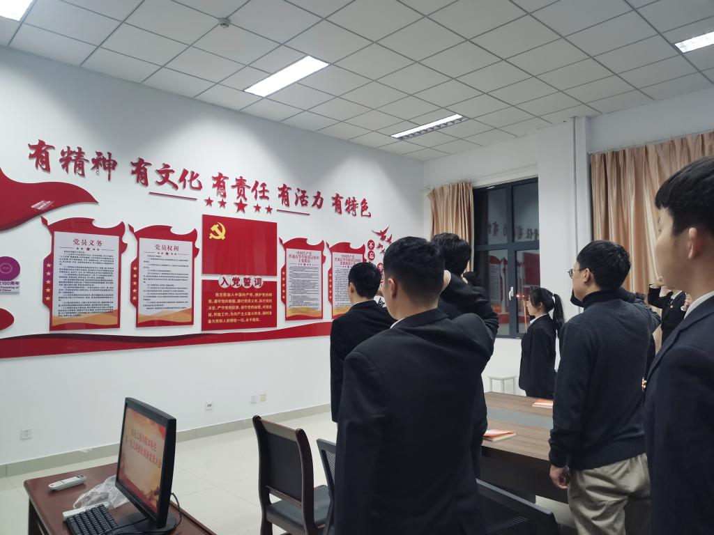 新发展党员代表张致远领誓,全体党员重温誓词并庄严宣誓。
