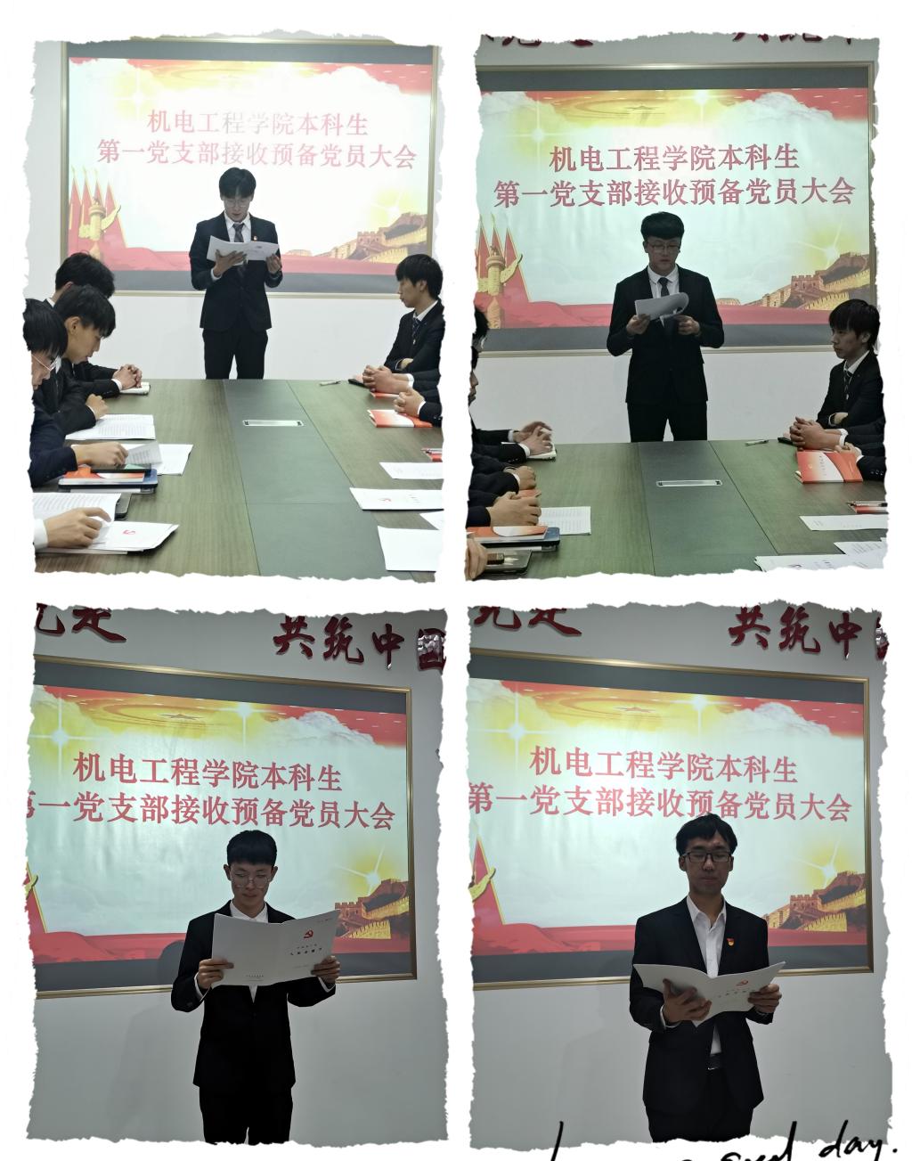 本科生第一党支部在机电529先后三次召开接收预备党员大会,会议吸纳了张致远等14名同志加入党组织。会议由支部书记于超主持,全体党员参加。