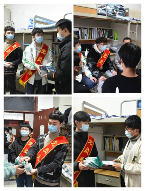 本科生第二党支部第一时间成立抗击疫情党员先锋岗,3月18日下午,支部党员代表到北苑二号楼送温暖。马浩元、史良凯、赵辉同志向21级新能源、能源专业同学发放了口罩、酒精、医药箱等抗疫物资,并与他们针对网络授课、学校疫情防控政策和日常生活等方面深入交流。同时,魏鲁增、张成林、刘家豪同志给21级油储、设计、船舶专业同学送来了消毒洗手液,并教给他们“内外夹弓大立腕”的七字洗手口诀。