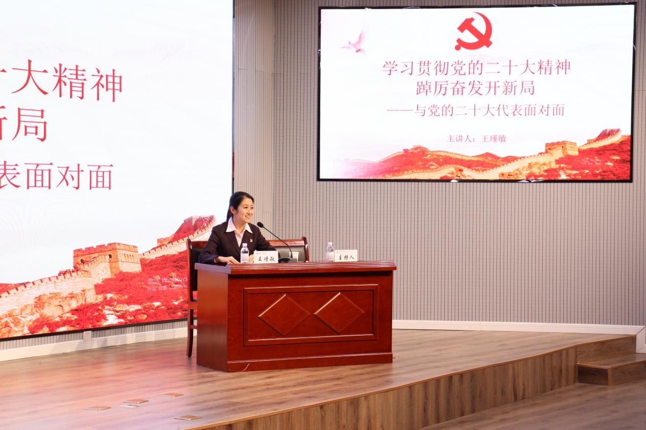 邀请党的二十大代表、招商银行青岛分行崂山支行王瑾敏来院宣讲二十大精神。学院党委理论学习中心组成员、党支部书记、辅导员、学生代表聆听了宣讲。宣讲会由学院党委书记任允晓主持。