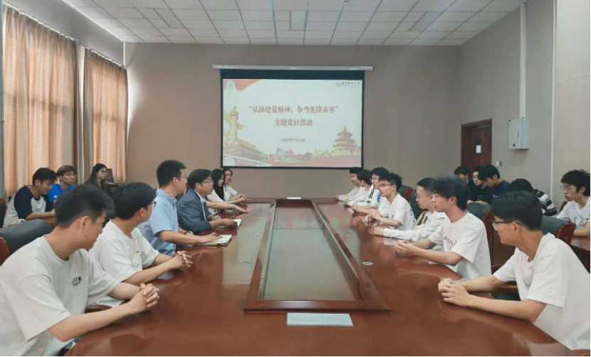 活动在《没有共产党就没有新中国》集体合唱中拉开帷幕。与会党员一同观看党史纪录片,感悟红色精神,牢记初心使命,坚定了“弘扬建党精神,争当先锋表率”的决心。并借此之际,党支部书记于超为党支部学生党员讲解分析就业形势、学习方向,同党支部学生党员交流未来发展规划。在交流研讨环节,党员们联系思想实际、学习和生活实际谈感想、谈体会,共同为未来发展巧分析、谋出路。