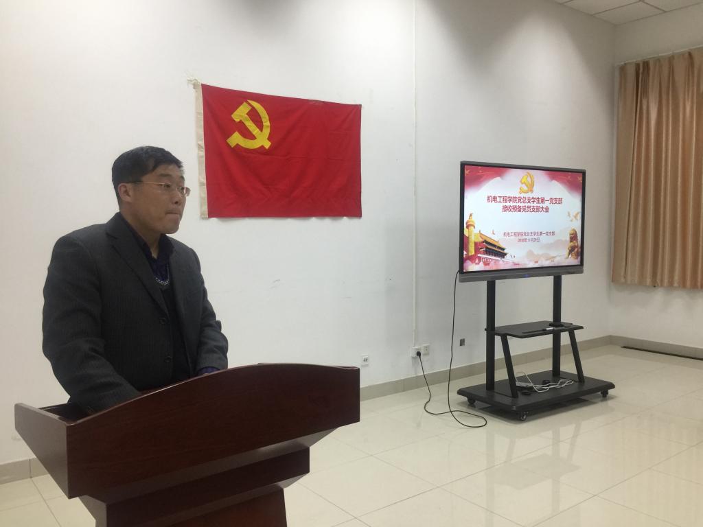 党总支学生第一党支部在机电楼D3-529会议室隆重召开接收预备党员支部大会。学生第一党支部成员李东阳、苗清、孙坤岩及2018年下半年发展对象等参加会议,会议由支部书记王作辉主持。