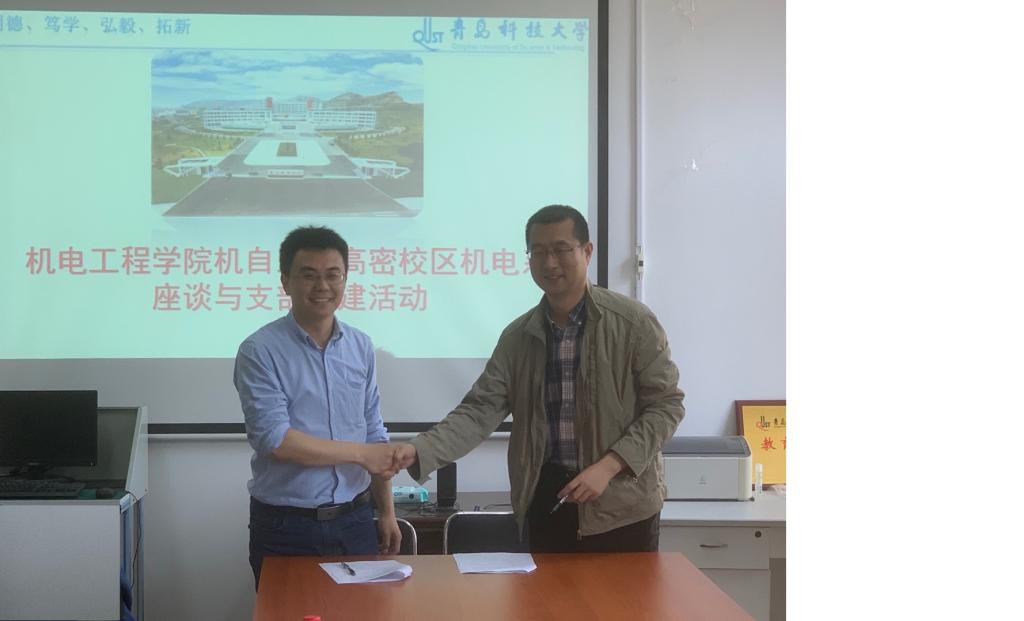 机自系党支部书记就各自支部基本情况做了简要介绍,并签订了支部共建协议。刘保成对于本次活动表示高度支持,希望两个支部通过共建能够共同提高,共同发展,特别是对于高密机电系这是一次很好的学习机会,要把握机会促进机电系的成长。机自系支部书记曹同坤对于这次支部共建的目的、内容进行了介绍,指出要通过此次共建不断推动“强党建、深合作、促发展”,一方面要促进党支部党建工作的发展,另一方面要通过共建促进中心的发展,让党建工作落到实处,真正起到引领中心工作的作用。