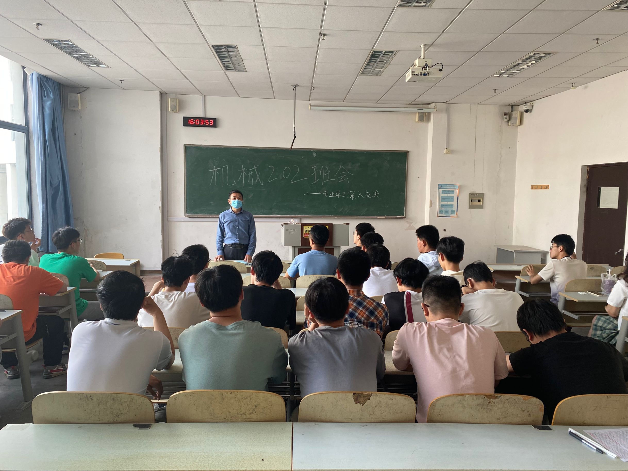 纪委副书记王江忠同志深入学生班级,与机械202班学生在明德楼217开展了“专业学习深入交流”为主题的班会,与同学们深入交流在学习上、生活上的各种问题,王老师给机械202班学生提供了宝贵的建议和方案。