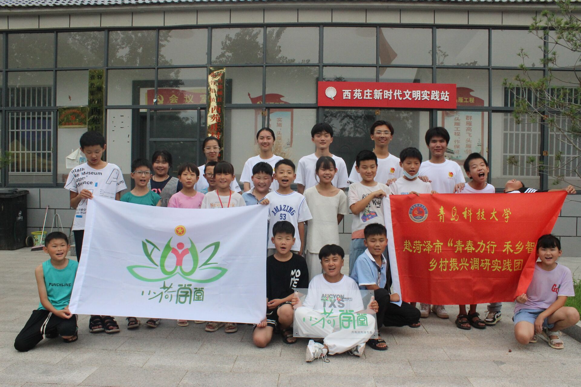 “青春力行,禾乡智兴”支教队的队员们在张鲁集西苑村新时代文明实践站开启了“小荷学堂”支教之旅。