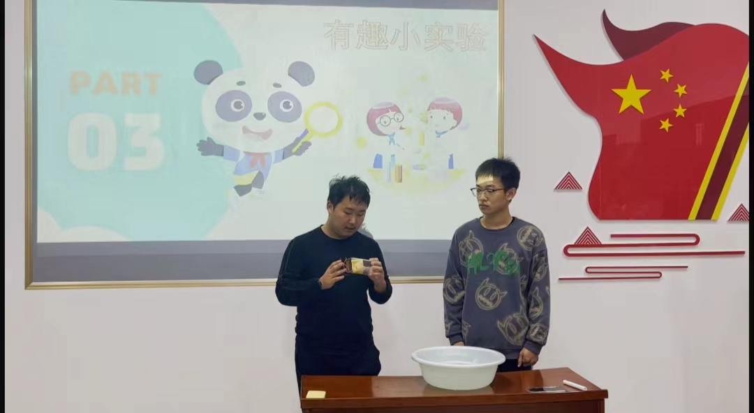 本次活动增强了同学们对优秀文化和国防成就的认识,让同学们充分了解文化自信和国防科技力量的强大,增强了同学们的民族自信心,在同学们心中播种下保卫祖国的种子。在课程的最后,志愿者们还为同学们精心准备物理小实验,让课堂更加生动有趣,让同学们更容易的接受物理知识。