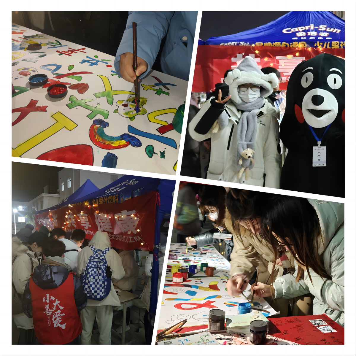 在为“艾”填色活动中,同学们拿起画笔,在我们准备的画纸上填色,一笔一画,黑白的线稿变得色彩斑斓,寓意艾滋病患者灰暗的世界重新焕发生机与活力。完成填色后,同学们来到签名处,在海报上签下自己的名字,将自己对艾滋病群体的关爱与鼓励寄托于此,在寒冷的冬日下散发温暖。