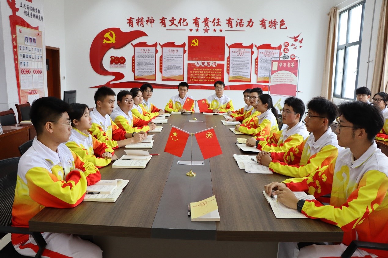 “读原著 学原文 悟原理”。赵梓清同学表示:祖国十年的变化,都得益于习近平新时代中国特色社会主义思想。三位团员代表分别带领大家一起阅读学习了《习近平新时代中国特色社会主义思想学习纲要(2023年版)》,重点学习了坚持“两个维护”方面的内容,引领团支部全体成员深刻领悟“两个确立”的决定性意义,增强“四个意识”、坚定“四个自信”、坚决做到“两个维护”。