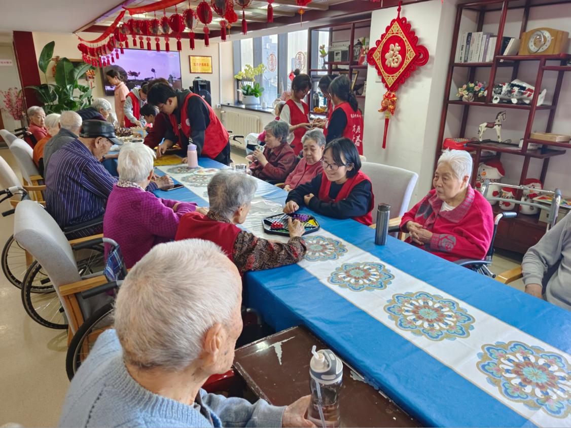 活动开始,志愿者们详细地了解老人们的身体状态和日常生活情况,嘱咐他们要保重身体、注意添衣保暖。活动中,志愿者们与老人们亲切交流,陪老人们唱歌、下象棋、做游戏。活动期间,志愿者们为老人献上歌曲《好运来》,“你勤劳生活美、你健康春常在、你一生的忙碌为了笑逐颜开~”一声声嘹亮的歌声,一句句美好的歌词,传递出对老人们的祝福和关怀。