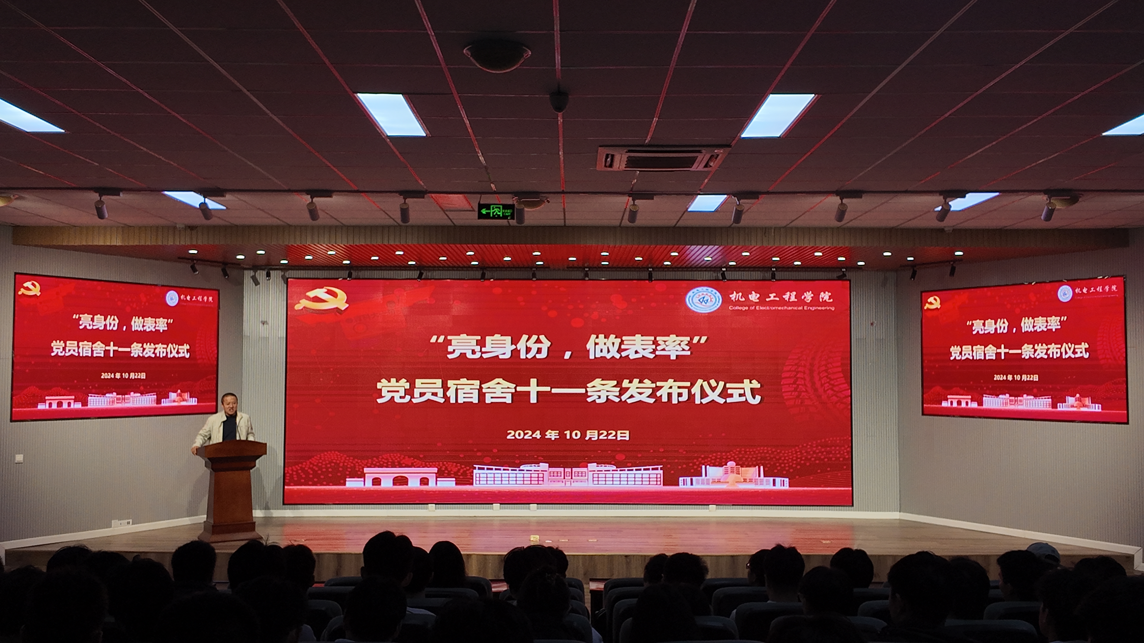 在机电楼530会议室举行“学院党员学生宿舍十一条”发布仪式,深入落实学校宿舍文化建设整体工作部署,让中共党员“亮身份、做表率”,学院辅导员、全体党员参加活动。