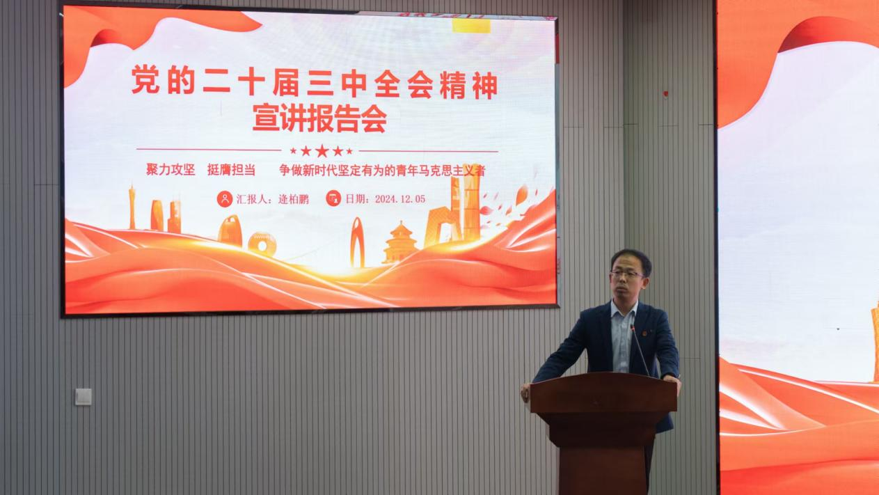 12月5日,免费性爱片 于530会议室开展“青马工程”培训,本次培训以“聚力攻坚,挺膺担当”为主题,由学院团委书记逄柏鹏老师做党的二十届三中全会精神宣讲报告,“青马工程”培训班学员参会。