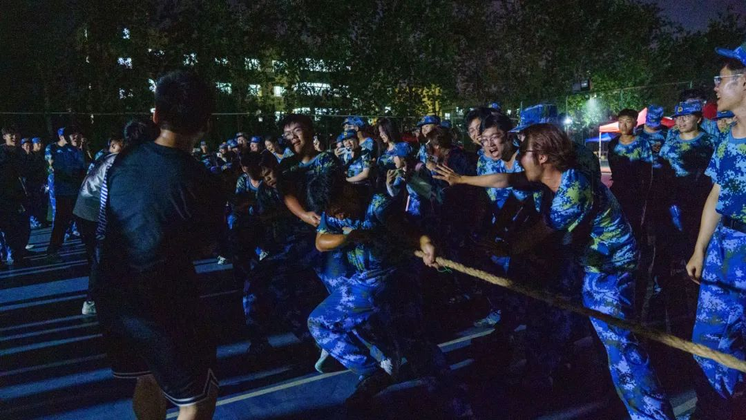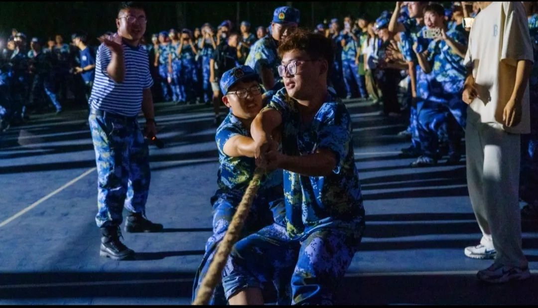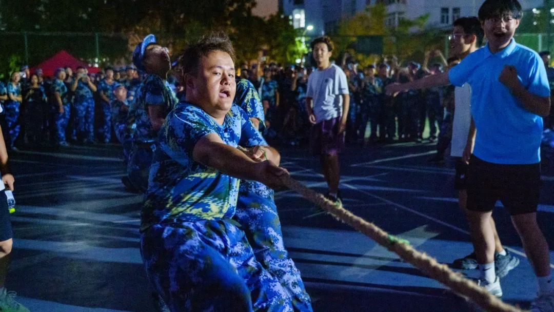 本次拔河比赛每队12名男生、2名女生,采用循环淘汰制。比的是集体的默契与配合,赛的是集体的团结与和谐,各队伍团结一心,凝聚军魂。哨声响起,在同学们震耳欲聋的助威声中,参赛运动员们咬紧牙关、全力以赴,现场气氛紧张又热烈。