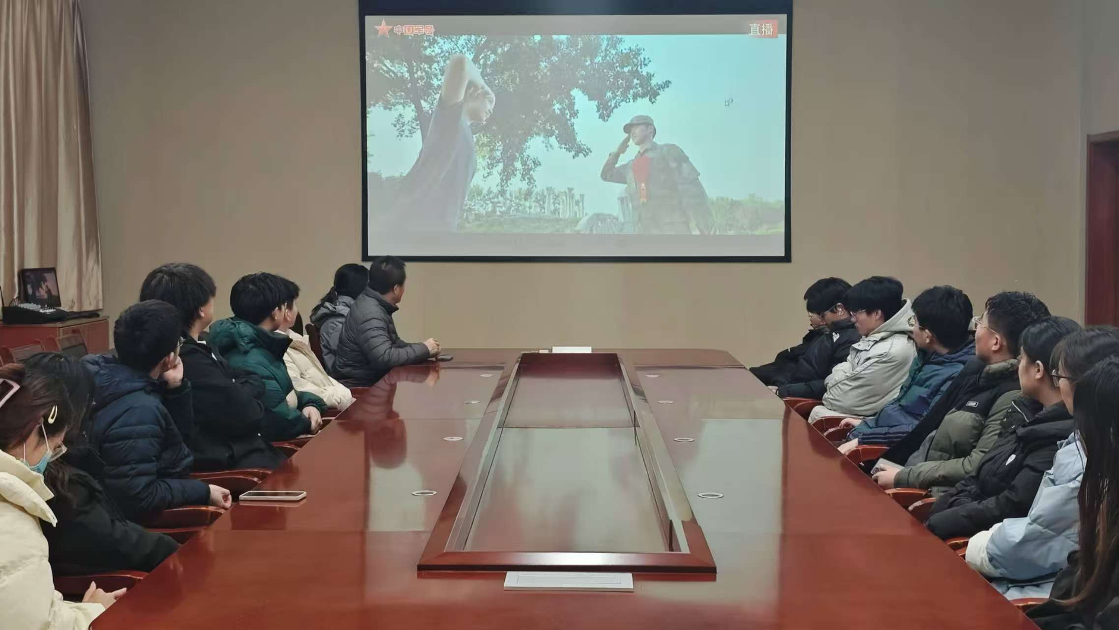 于518会议室组织学生共同观看2025年全国征兵主题系列首场直播。学院党委副书记兼副院长杨小明、2025届毕业生辅导员、2025 届毕业生及其他年级有入伍意向的学生参与活动。