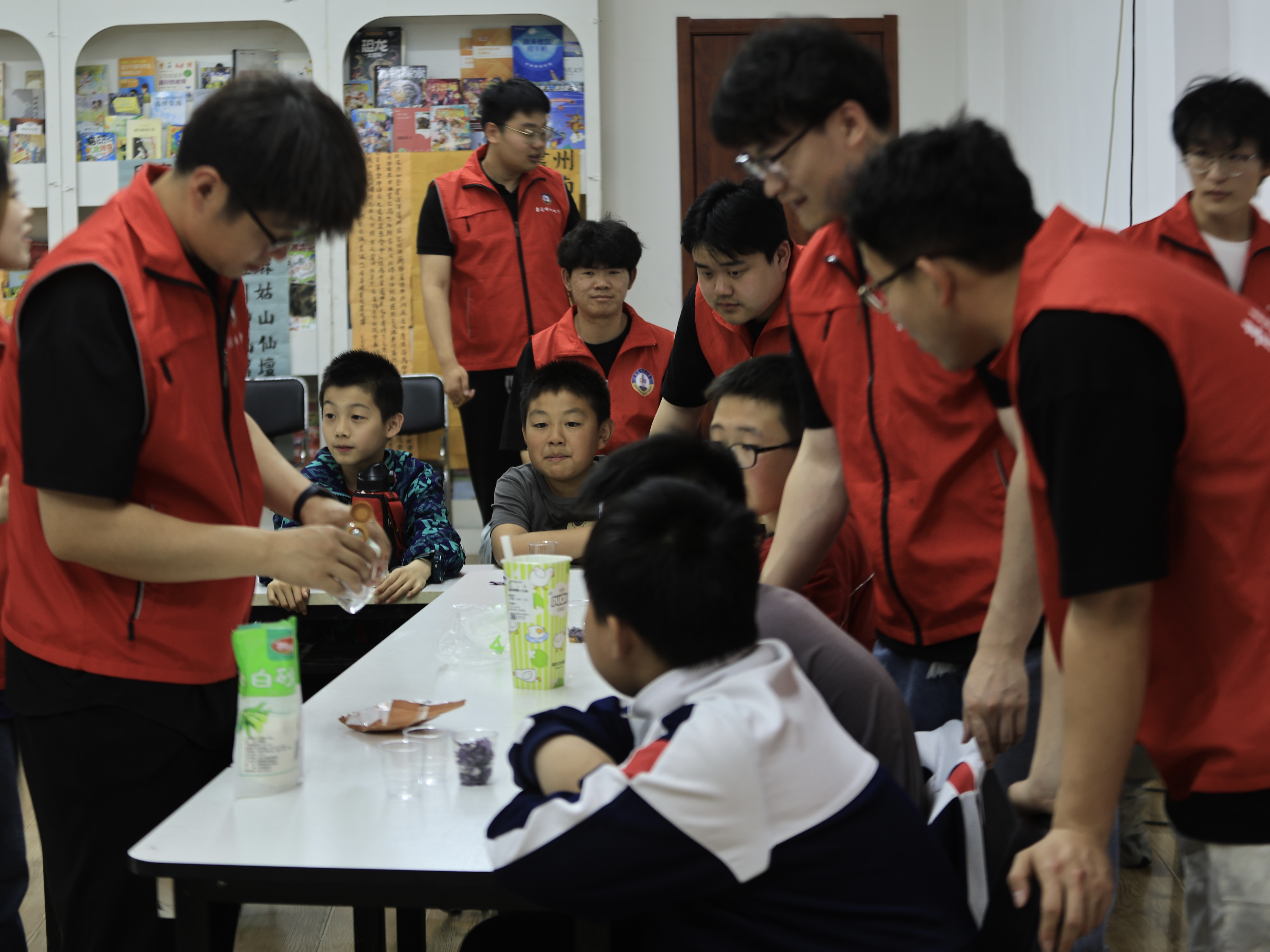 研究生会以科普和实践的方式,在项城路社区为小朋友们带来了一节别开生面的科普活动。此次活动以“生活中的化学-紫甘蓝指示剂”为主题,通过“知识讲授+实验操作+思维融合”的创新模式,为社区儿童打造沉浸式科学体验,培养小朋友的问题发现能力和科学探究精神。