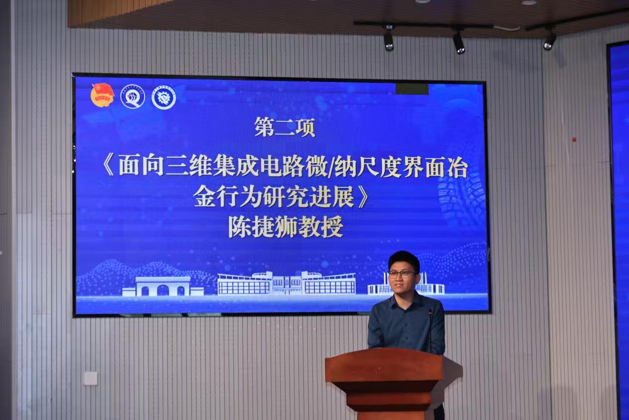 陈捷狮以“面向三维集成电路微/纳尺度界面冶金行为研究进展”为题,系统介绍了团队在纳米尺度界面反应机制、工程化应用路径以及人才培养等方面的最新成果。他指出,跨学科协作与系统性思维是破解复杂技术难题的关键,并勉励青年学子紧跟科技前沿,聚焦国家战略需求,在科研实践中不断探索自身价值、明确前行方向。余虹霖结合自身科研实践,围绕科研选题、实验设计、论文撰写等环节,系统分享了科研全过程的经验与思考。她特别强调“问题导向”与“时间管理”对科研效率和成果质量的重要意义,并呼吁同学们在科研奋斗的同时,保持良好心态,实现学术与生活的协调发展。