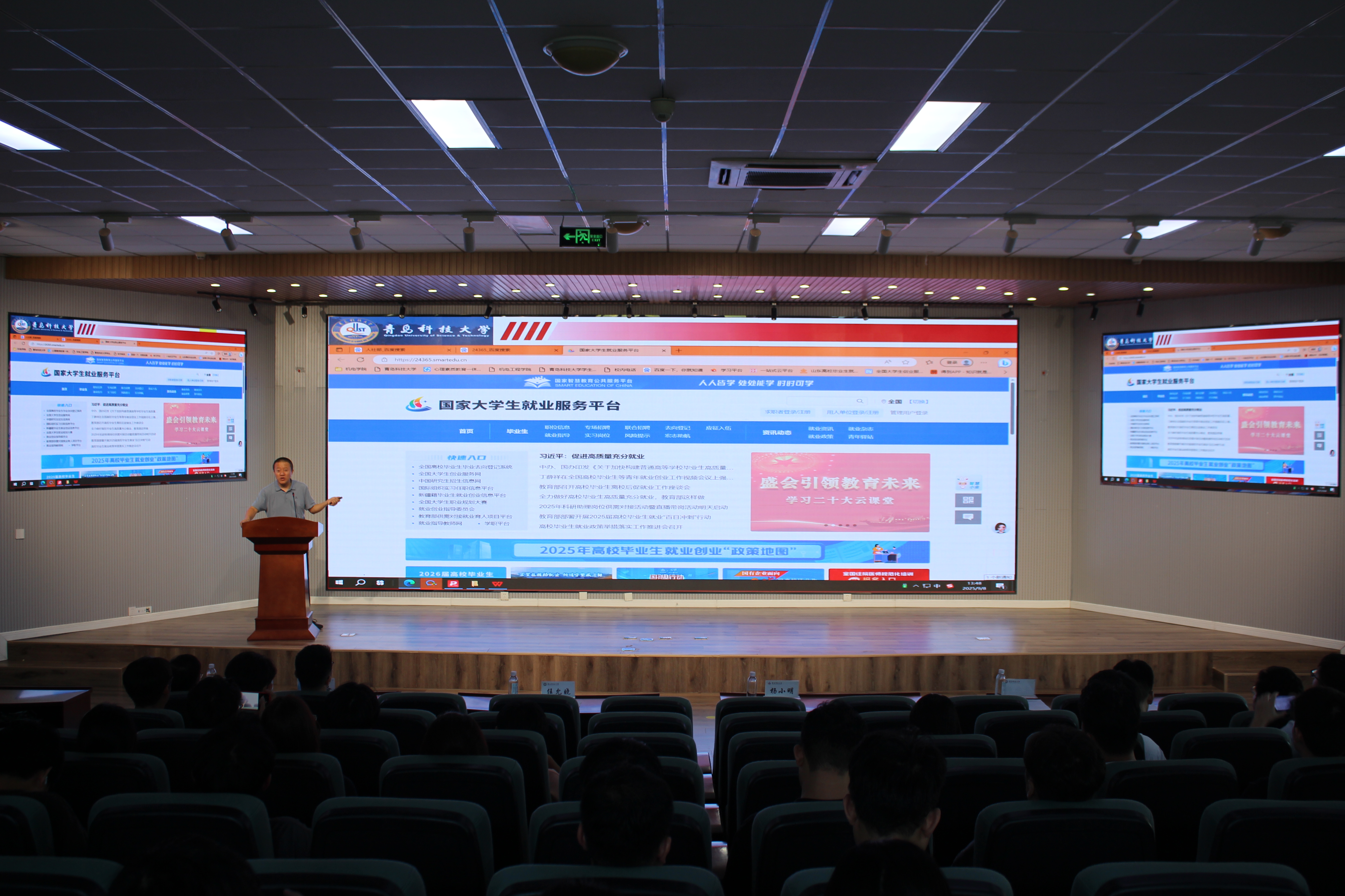 在机电楼530会议室举行2026届研究生就业开学第一课。学校就业指导中心副主任孙一君、软控股份有限公司人力资源部刘备受邀作专题分享。学院党委副书记杨小明主持会议,2026届研究生学生骨干近百人参加就业开学第一课。